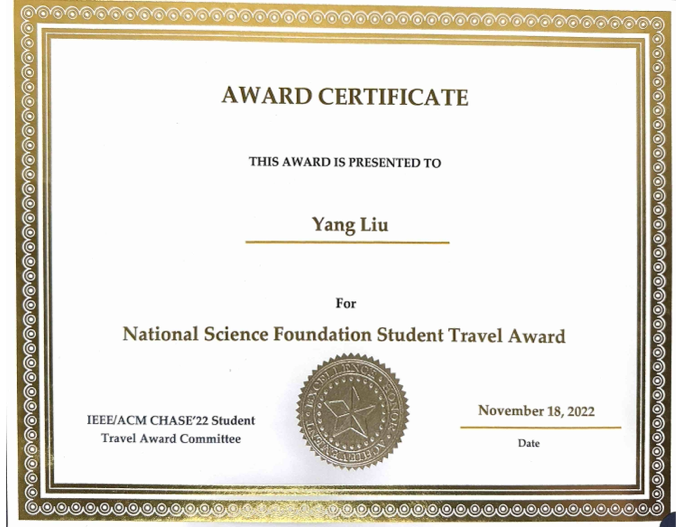 2022 National Science Foundation Student Travel AwardFrom the IEEE/ACM CHASE’22 ConferenceShare on Twitter Facebook LinkedIn Previous Next